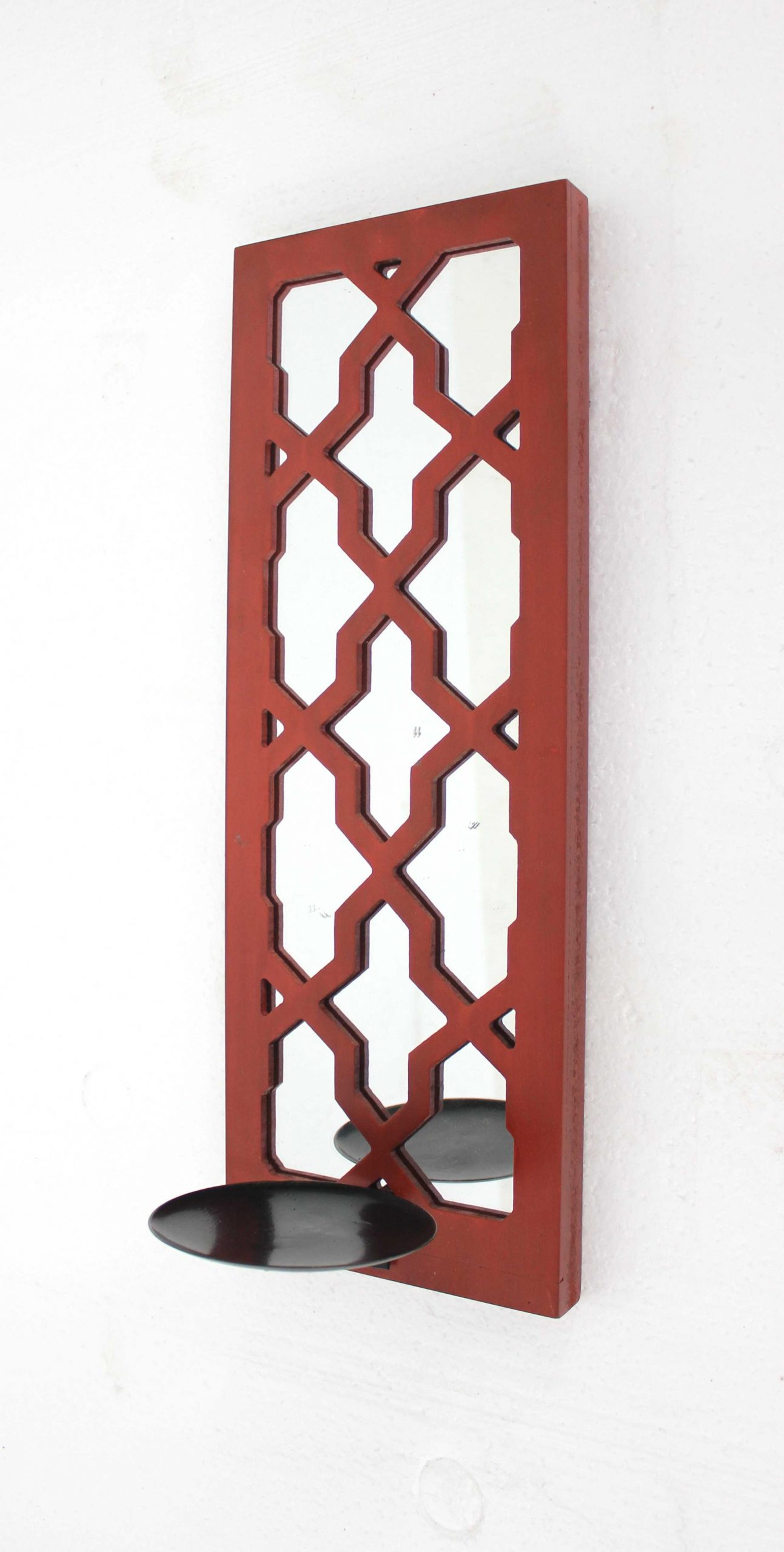 this candle holder sconce set brings home a simple romantic appeal but elegant style to complement your decor. our candle holder sconce features a minimalist geometric pattern that resonates beauty and tranquility. welcome your guests and visitors to the world of serenity as you decorate both sides of your door with our elegant candle holder sconce set. its wooden frame is sturdily crafted to provide long-lasting and exciting appeal in every home. – minimalist collection – red finish – geometric patterned mirror back – metal candle holder