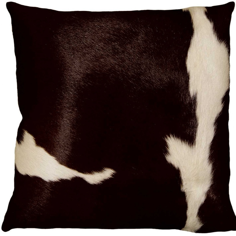 Bring a bit of fashion and zip to your space with this eye-catching and comfy 18-inch chocolate cowhide throw pillow. This luxuriously soft pillow is expertly made of high grade, genuine cowhide in a chocolate coloration. Elegantly chic, this pillow is the epitome of luxury. This soft cotton pillow not only is decorative but made to be comfy and cozy all day long. Decorative throw pillows not only add color and dimension to your space but can be comfy and supportive when you are lounging and cuddling as well. Decorative pillows are a great way to change up the look and feel of your space easily and quickly. 18-inch H x 18-inch W x 5-inch D
