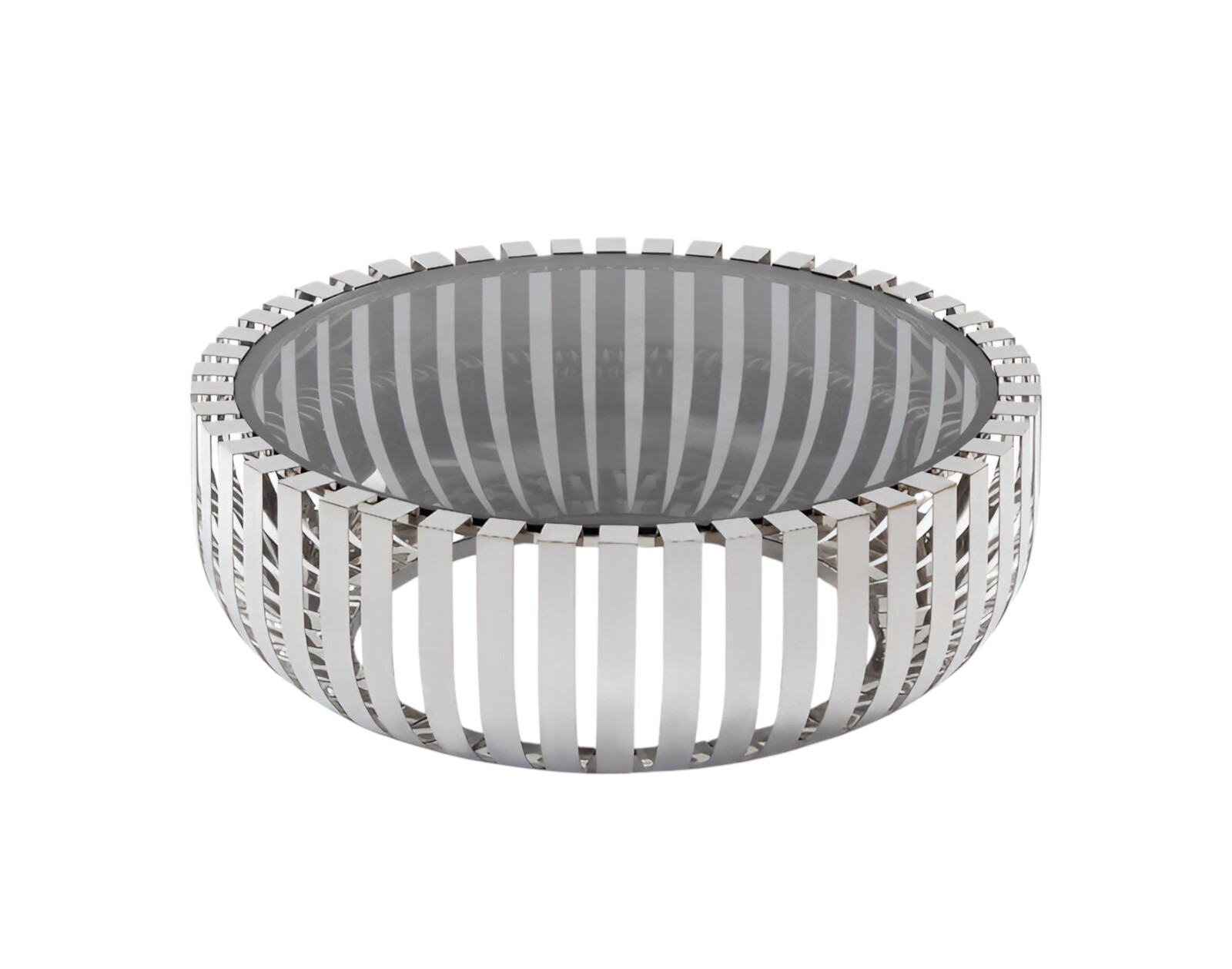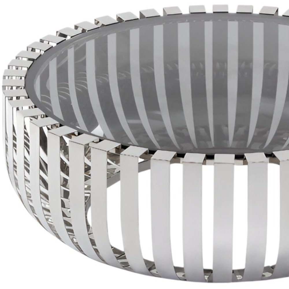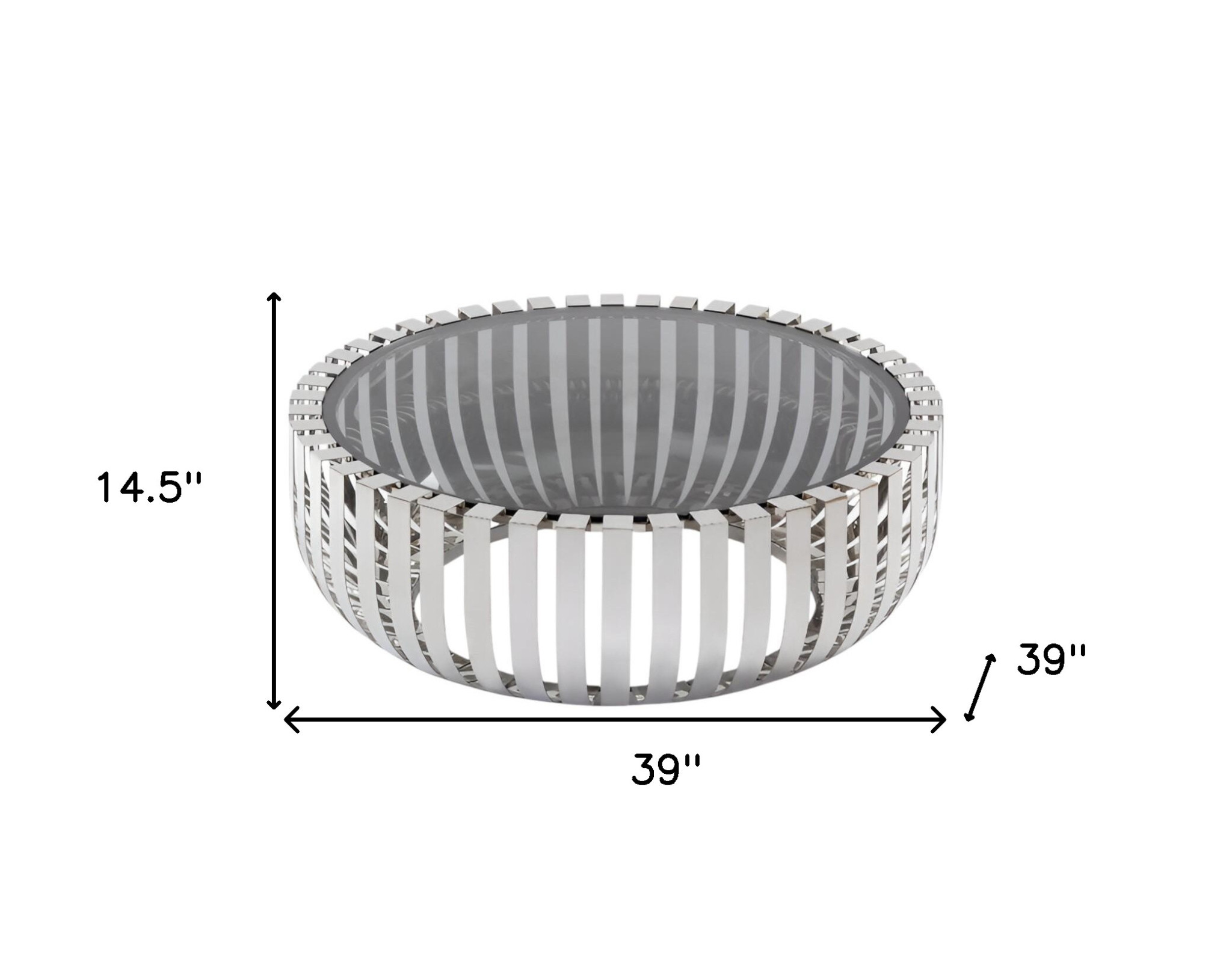 This stylish 39-inch clear and silver glass and stainless steel round abstract coffee table is not only practical, but good looking and built to last. Quality construction from the silver stainless steel base combines with clear glass of the top to give this table a fresh and updated look. This round table features a fresh and stylish shape to give your room a visually pleasing accent. If you’re looking for something that can fit into a living area, bedroom, or office, this coffee table is for you. 14.5-inch h x 39-inch w x 39-inch d.