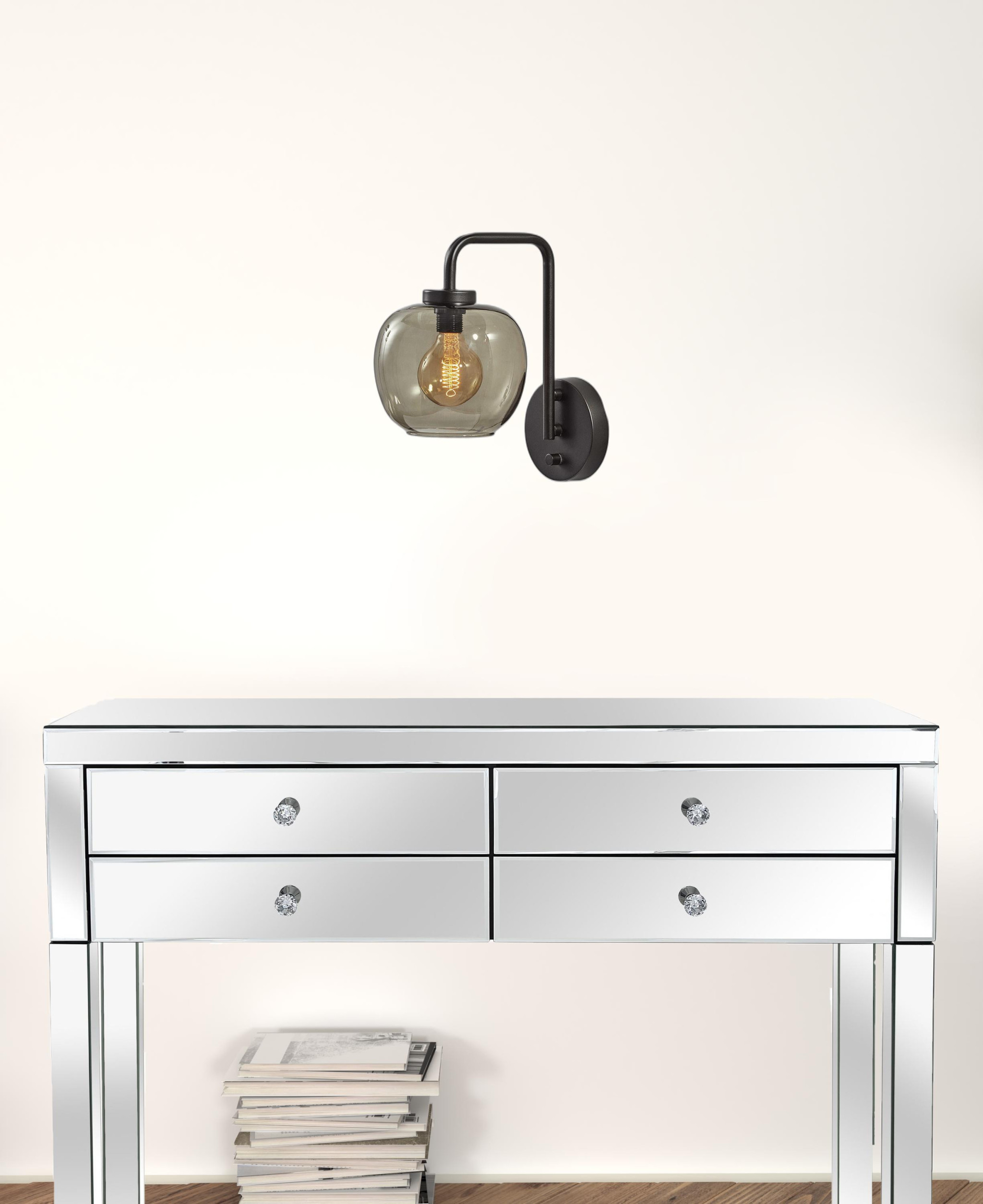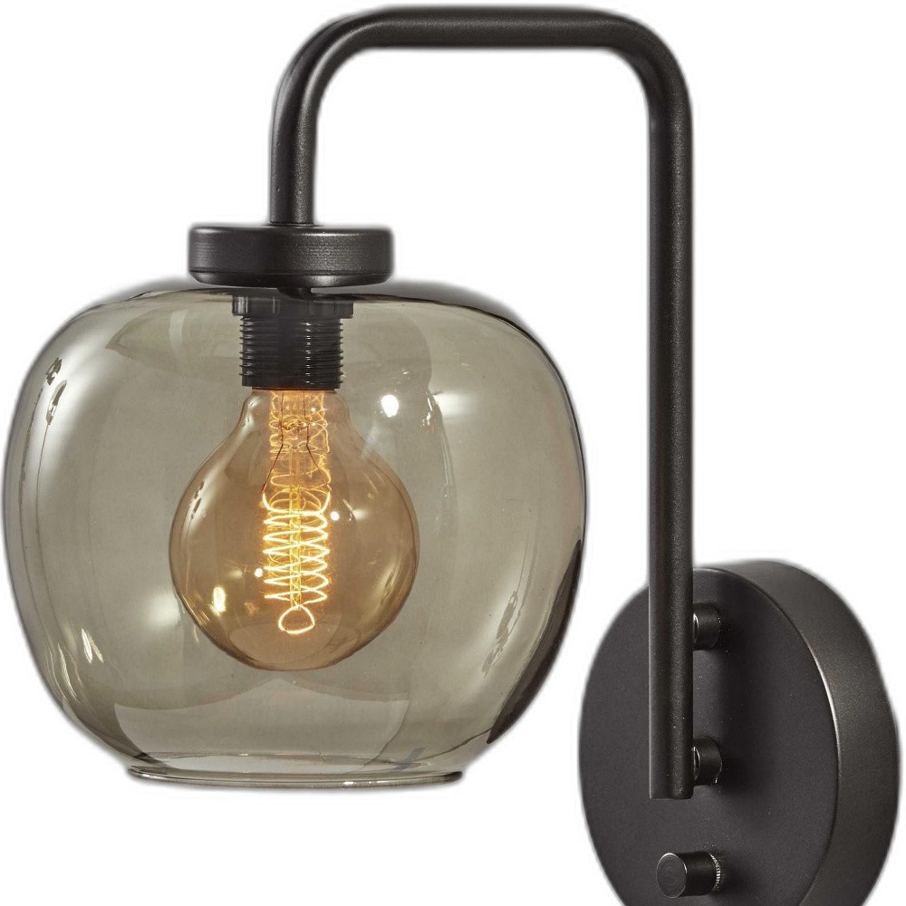 Set the mood with this wall lamp. Included with this purchase, is a vintage style Edison bulb with a unique globe shape that mirrors the shape of a beautiful smoked glass shade. A matte black metal finish and a black fabric covered cord adds contemporary edge. With both hardwire and plug-in capabilities, this wall lamp is for everyone!