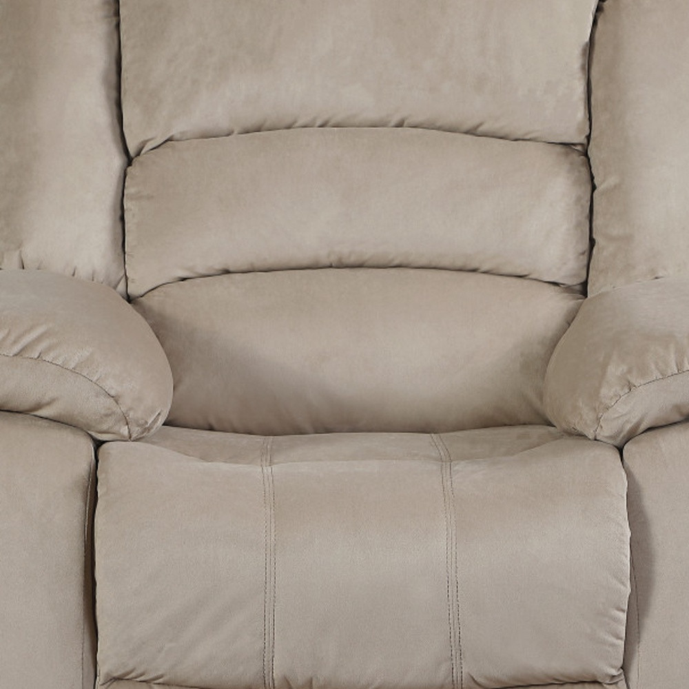 Prepare to amaze even the most discerning critics with our three piece indoor beige microsuede six person seating set – the epitome of indoor seating that will leave them speechless. Prepare to enter the realm of ultimate relaxation with this reclining sofa that offers unparalleled comfort and luxurious lounging. Discover the perfect seating solution with a seating set featuring microsuede that are both durable, ensuring longevity, and comfortable, providing endless hours of coziness. The presence of coil spring seat construction helps distribute weight evenly, reducing pressure points and enhancing overall comfort by minimizing the strain on specific areas of the body. The inclusion of a loveseat into your mix allows a fashionable seating option in a compact design. Gather with family and loved ones with this seating set that will bring you all together. 40-inch H x 178-inch W x 35-inch D